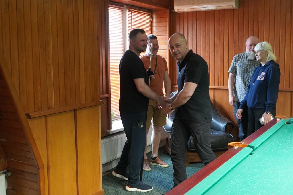 Тренування провели тренер, майстер спорту з більярду Олександр Бондар та військовий ветеран, тренер із більярду комплексної дитячо-юнацької спортивної школи Сергій Кириченко. Вони поділилися секретами гри, розкрили особливості правильної техніки та стратегічного підходу до змагань.