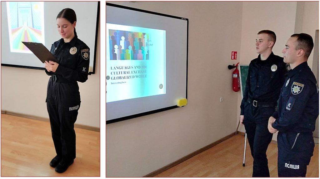 У засіданні гуртка взяли участь здобувачі вищої освіти 3 курсу навчальної групи ДР-344, які підготували виступи англійською мовою: Катерина Ткаченко й Ігор Переверзев розповіли про роль штучного інтелекту в підтримці міжмовної комунікації, зокрема в сфері перекладу та автоматичного розпізнавання мовлення, і навели приклади практичного використання ШІ у правоохоронній діяльності; Викторія Рубан і Наталія Таран акцентували увагу присутніх на соціальній ролі багатомовності, її значенні для побудови ефективної комунікації у багатокультурному суспільстві; Анна Мотуз і Андрій Павлюк дослідили вплив міграційних процесів на мовне середовище та навели приклади культурного обміну й інтеграції різних мовних спільнот у глобалізованому світі; Валерій Несмашний та Ігорь Хижняк продемонстрували переваги використання сучасних цифрових платформ і мобільних застосунків для вивчення мов, підкреслили їхню значущість у підготовці майбутніх фахівців правоохоронної сфери.