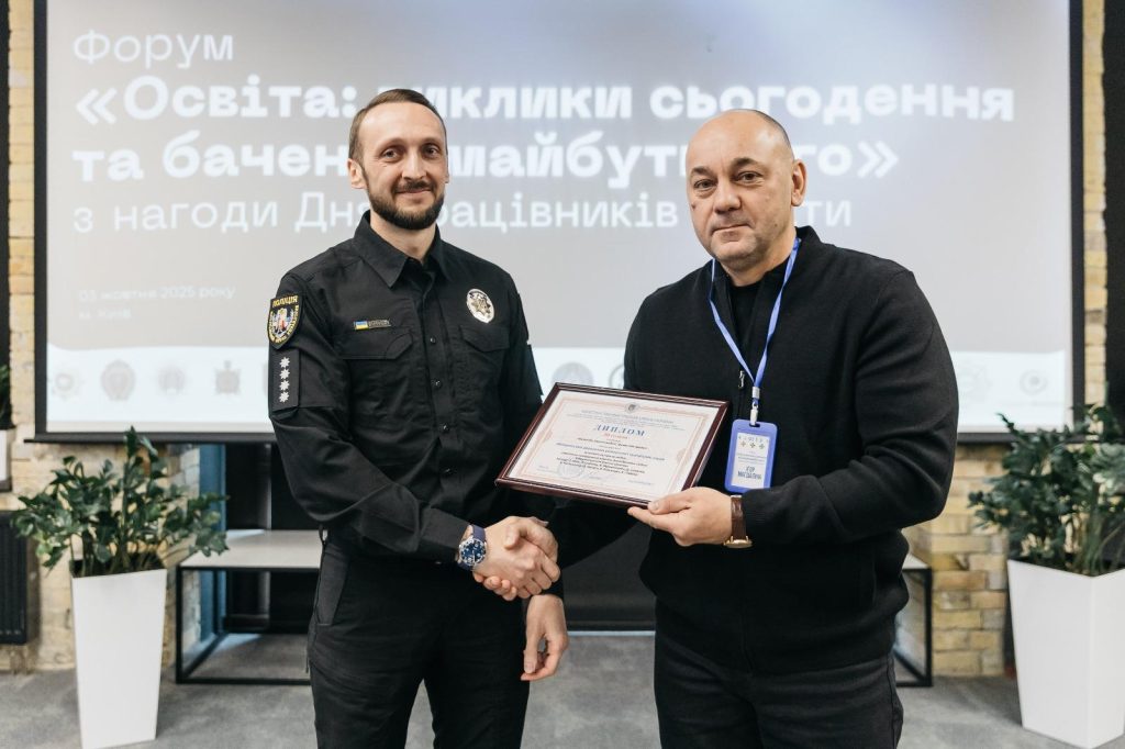 Участь у форумі взяв тимчасово виконуючий обов’язки ректора ДДУВС Ігор Магдаліна. У межах заходу він як представник закладу вищої освіти отримав дипломи за шість призових місць, які посів ДДУВС у Конкурсі на кращу наукову, науково-технічну та профорієнтаційну продукцію в апараті МВС, територіальних органах, закладах, установах і на підприємствах, що належать до сфери управління МВС у 2025 році.