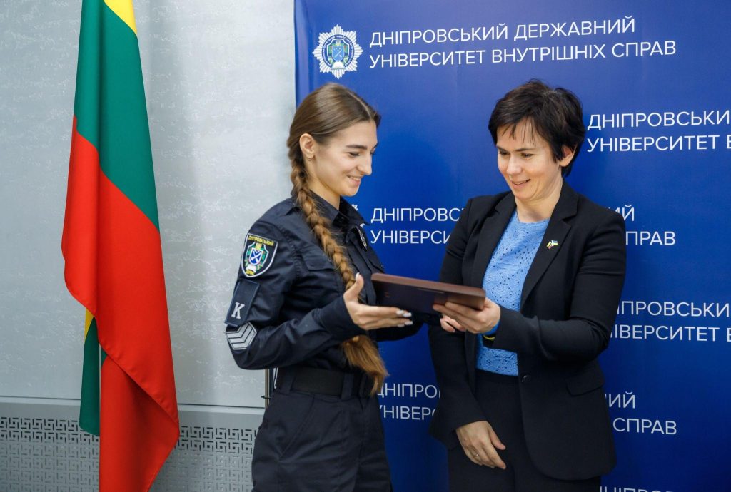 Ігор Магдаліна висловив щиру подяку Надзвичайному і Повноважному Послу за візит до Дніпровського державного університету внутрішніх справ, а також представникам Почесного консульства Литовської Республіки у Дніпрі — за постійну підтримку щорічного конкурсу «Україна–Литва» та сприяння розвитку наукової діяльності здобувачів вищої освіти в межах українсько-литовського співробітництва. Під час зустрічі він провів коротку екскурсію університетом, розповів про масштабну роботу, проведену університетом із адаптації освітнього процесу до сучасних безпекових реалій.