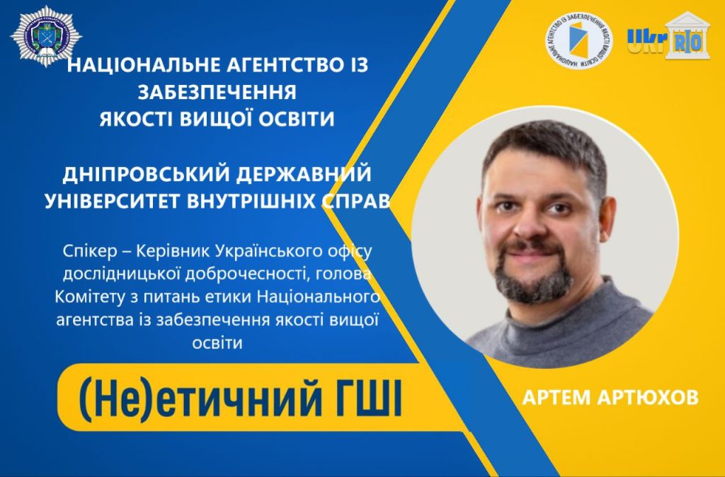 ДДУВС запрошує на відкритий захід за темою: «(Не)етичний ГШІ» 21.10.202521.10.2025 Administrator Анонси університету Спікер заходу – керівник Українського офісу дослідницької доброчесності, Голова Комітету з питань етики Національного агентства із забезпечення якості вищої освіти Артем Артюхов. Дату та час буде повідомлено додатково. Реєстрація за посиланням. Відділення комунікацій — 19