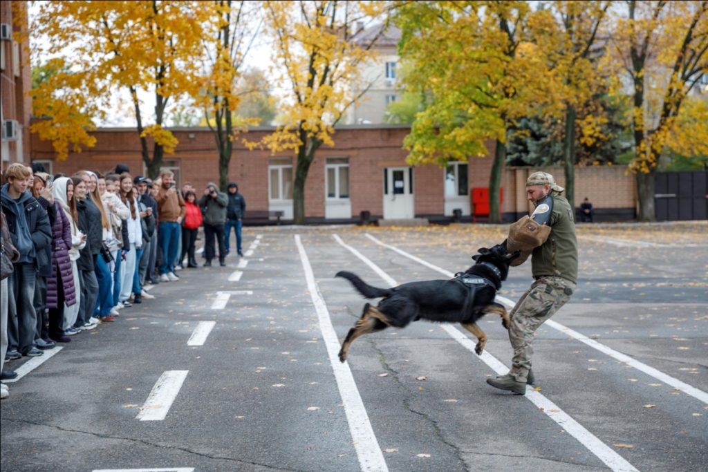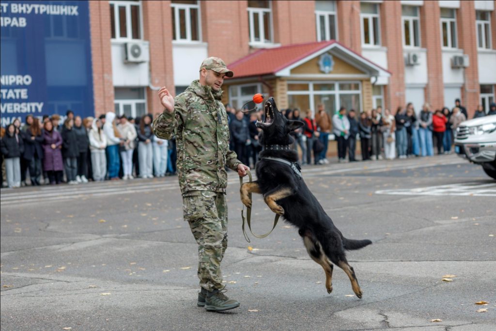 На плацу університету на відвідувачів чекала демонстрація роботи Кінологічного центру ГУНП у Дніпропетровській області.