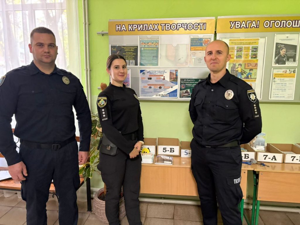 Так, старший викладач кафедри кримінального процесу ДДУВС, капітан поліції Олександр Неклеса спільно з інспектором сектору кадрового забезпечення Кам’янського РУП, капітаном поліції Владиславом Клименком та старшим інспектором відділення сектору освітньої безпеки Кам’янського РУП, капітаном поліції Анастасією Наливайченко зустрілися з учнями Кам’янського ліцею №11.