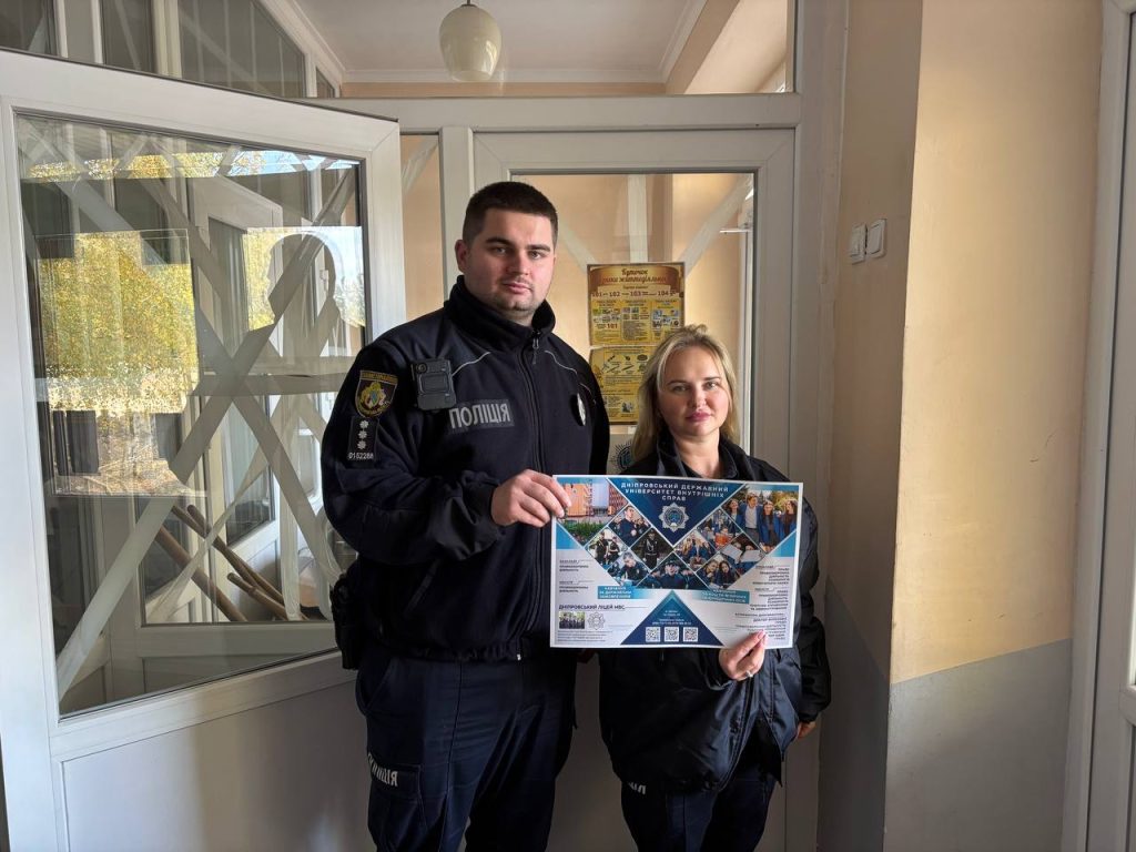 Старшокласникам розповіли про умови вступу до ДДУВС, представили освітні програми навчально-наукових інститутів та факультетів. Окрему увагу приділили перспективам професійної реалізації випускників, а також курсантському й студентському життю, що поєднує освітні активності, саморозвиток і дисципліну.