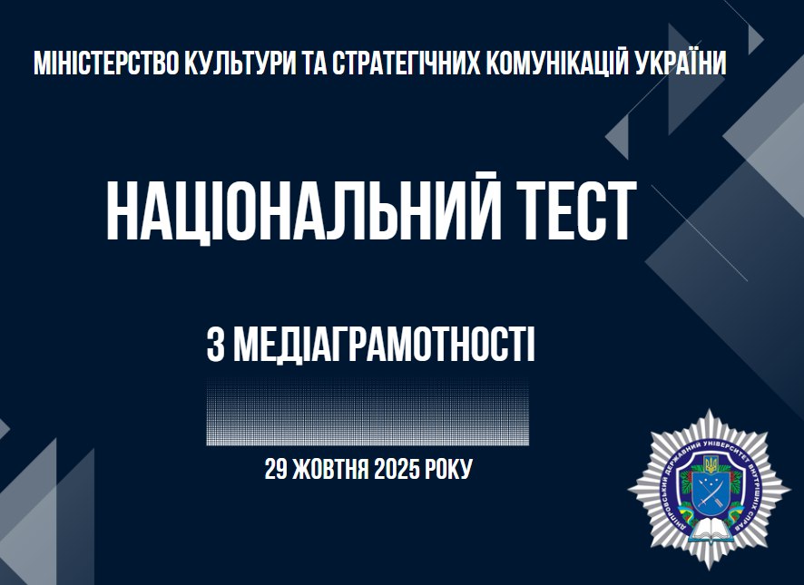 Міністерство культури та стратегічних комунікацій України повідомляє, що 29 жовтня 2025 року відбудеться Національний тест з медіаграмотності.