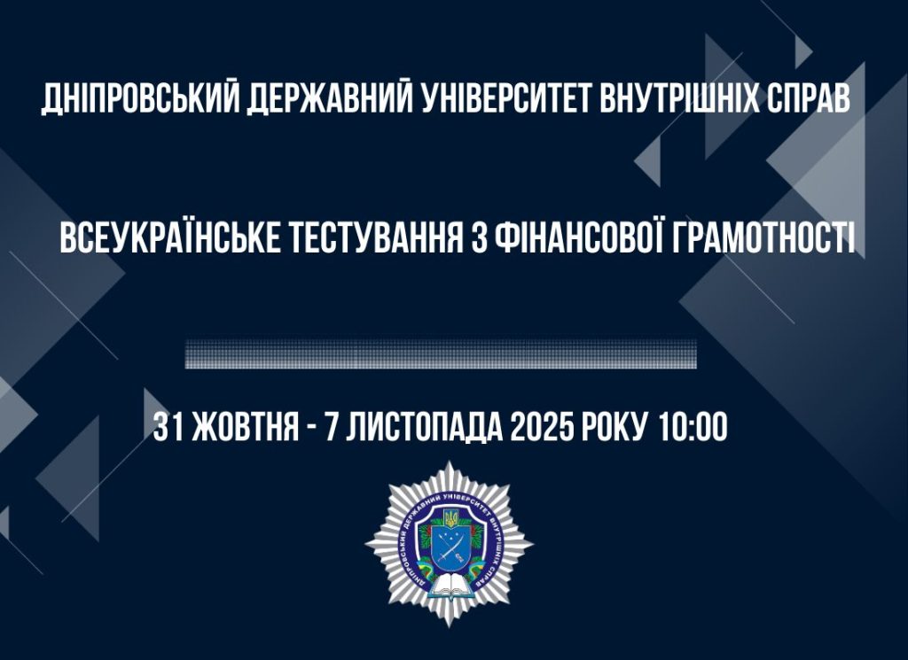 Представників ДДУВС запрошують взяти участь у тестуванні з фінансової грамотності. Тестування буде доступним в електронному режимі з 31 жовтня по 7 листопада 2025 року.