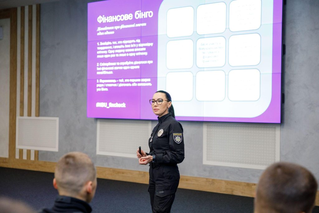 Начальниця відділу соціально-гуманітарної роботи ДДУВС підполковниця поліції Наталія Карнаух ознайомила учасників зі Всесвітнім днем заощаджень, його сутністю та історією. Курсанти та студенти взяли участь у грі «Фінансове бінго», дізналися про фінансові звички та основи правильної фінансової поведінки.