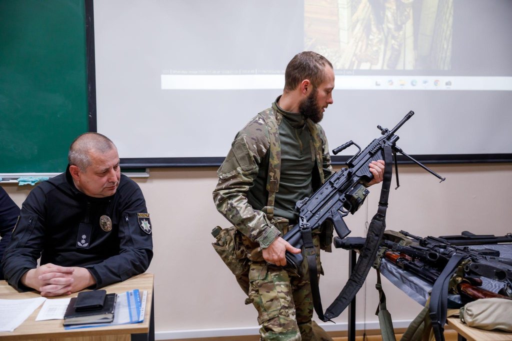Під час зустрічі поліцейські спецпризначенці розповіли про діяльність підрозділу, задачі, які виконують на передовій, а також продемонстрували зразки озброєння та спеціального спорядження.
