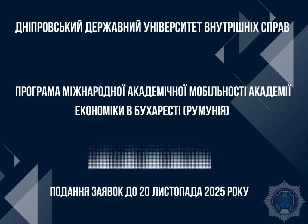 Оголошується конкурс на навчання у весняному семестрі 2025/2026 н.р. за програмою академічної мобільності здобувачів вищої освіти спеціальностей D8 Право, K9 Правоохоронна діяльність, C1 Економіка та С4 Психологія.