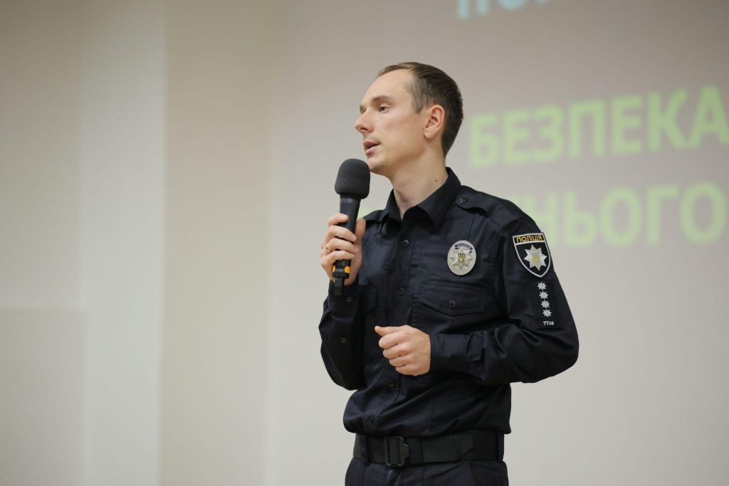 Перед присутніми виступив інспектор відділу безпеки дорожнього руху Управління патрульної поліції в Дніпропетровській області, капітан поліції Дмитро Козар. Він детально розповів про типові ризики зимового періоду та навів приклади ситуацій, які нерідко призводять до аварій.