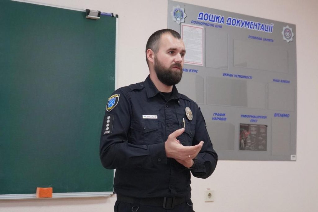 Заняття для слухачів спеціалізації провели старший викладач кафедри адміністративного права і процесу Микола Репан спільно з начальником відділу Служби освітньої безпеки Управління патрульної поліції в Дніпропетровській області, капітаном поліції Денисом Шульгою. Темою зустрічі стала «Організація роботи дільничного офіцера поліції та інших працівників поліції на поліцейській дільниці».
