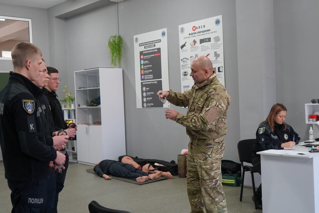 Перший день навчання було присвячено вивченню сучасних тактичних принципів і моделі застосування сили, тактики дій при різних рівнях опору та роботі малих груп, патрулюванню з використанням БПЛА, алгоритму MARCH та основ ідентифікації вибухонебезпечних предметів.