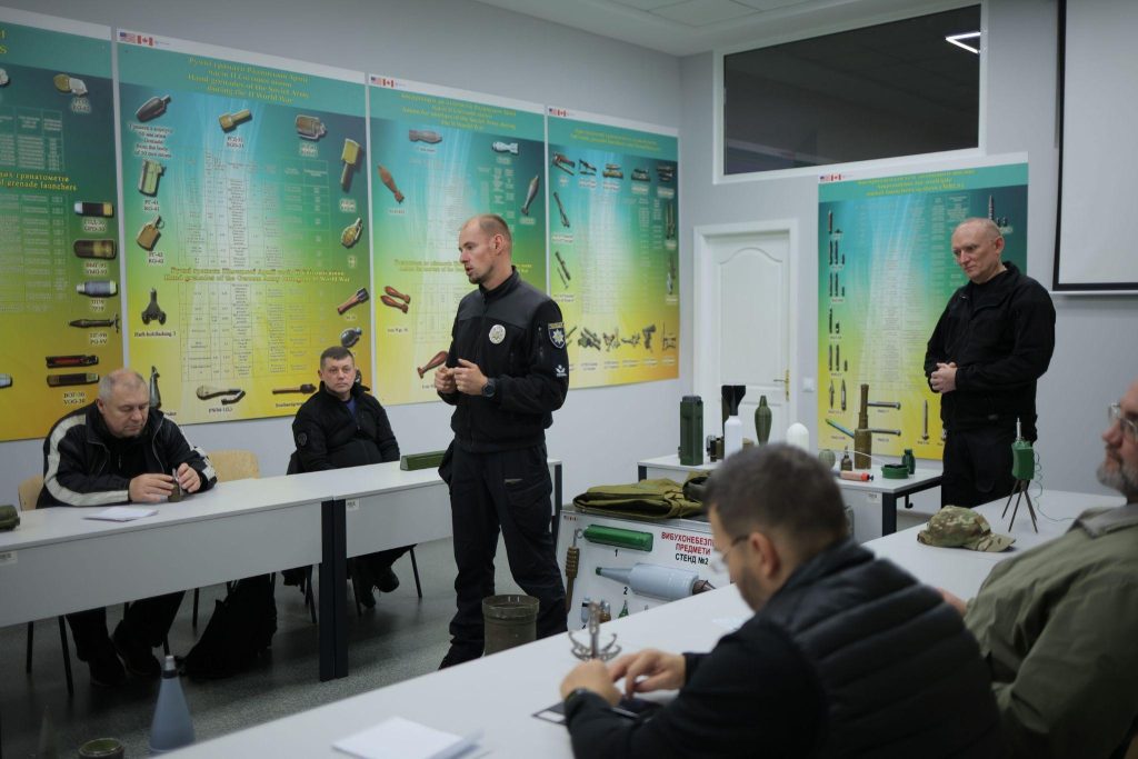 Перший день навчання було присвячено вивченню сучасних тактичних принципів і моделі застосування сили, тактики дій при різних рівнях опору та роботі малих груп, патрулюванню з використанням БПЛА, алгоритму MARCH та основ ідентифікації вибухонебезпечних предметів.