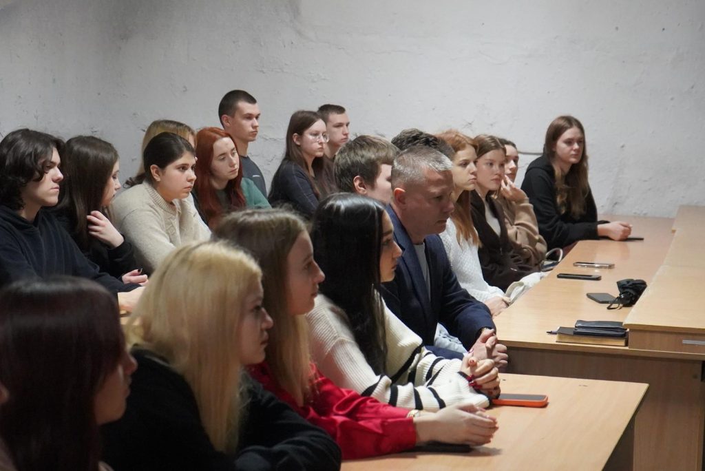 Зі студентами зустрівся військовий ветеран Артем Формальов. Його присутність та досвід дозволили учасникам отримати безпосереднє розуміння ціни свободи та важливості жертовності у боротьбі за незалежність та гідність української нації.