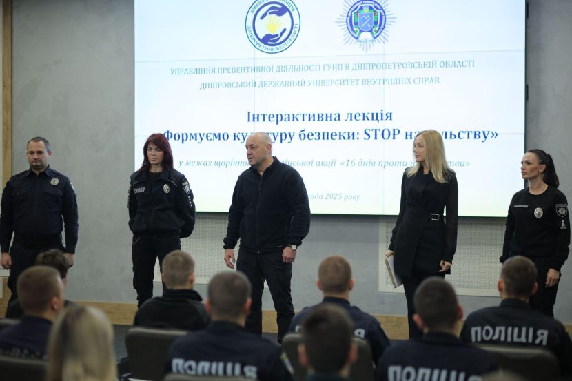 У ДДУВС спільно з відділом ювенальної превенції Управління превентивної діяльності ГУНП в Дніпропетровській області організовано та проведено інтерактивну лекцію для здобувачів вищої освіти університету та ліцеїстів Дніпровського ліцею МВС ім. О. Гостіщева. Захід пройшов у межах акції “16 днів проти насильства”.