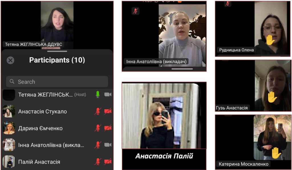 На засіданні з доповідями виступили здобувачки вищої освіти Навчально-наукового інституту права та інноваційної освіти: Олена Рудницька у своєму виступі акцентувала на тому, що в умовах гібридної війни, яка охоплює як фізичну, так і інформаційно-цифрову площину, діти стають особливо вразливими до маніпуляцій, вербування та втягування у протиправну діяльність з боку ворожих структур; Анастасія Палій розповіла про проблеми кваліфікації злочинів, учинених на тимчасово окупованих територіях України, зокрема щодо порушень прав дітей; Анастасія Гузь доповіла про небезпеку, яку становлять соціальні мережі та ігрові платформи, що використовуються для залучення неповнолітніх до незаконної діяльності. Також невеликі доповнення до виступів зробила Катерина Москаленко.