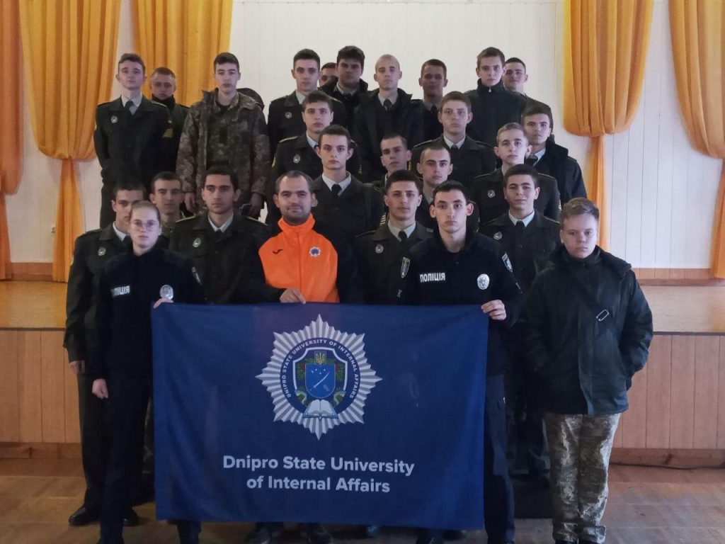 Кафедрою спеціальної фізичної підготовки проведено профорієнтаційну роботу на базі Ліцею митно-податкової справи з посиленою військово-фізичною підготовкою у Дніпрі. Учасникам роз’яснено умови вступу до університету, а також продемонстровано основні тактичні дії для захисту правоохоронця у разі загрози з боку озброєного правопорушника.
