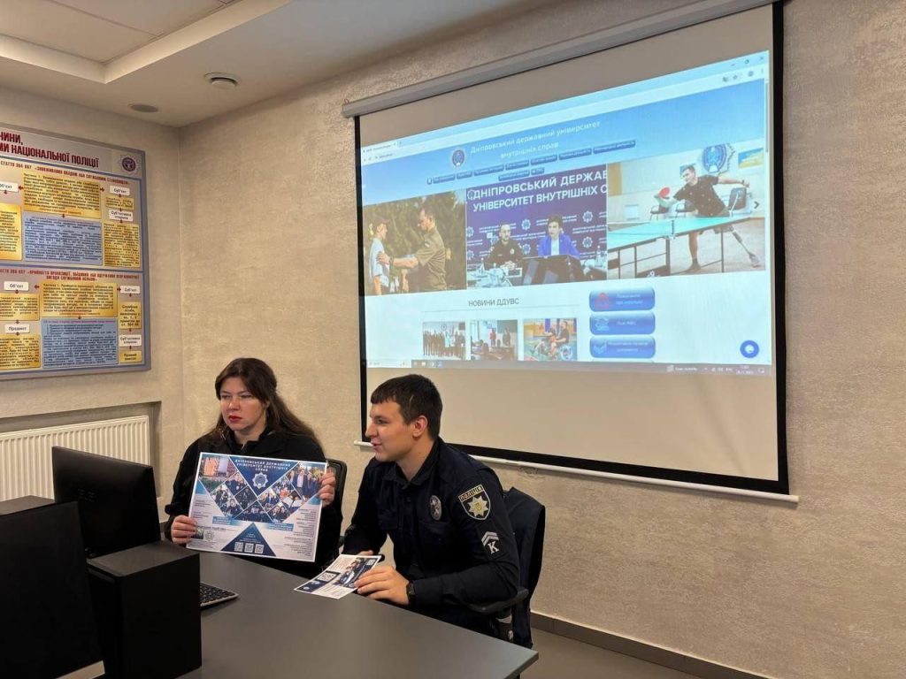 Профорієнтаційні заходи для школярів Павлоградського ліцею №11 організовано кафедрою криміналістики та домедичної підготовки. Зокрема, викладач Вадим Чепурко розповів про освітньо-професійні програми, а також окреслив кар’єрні можливості в органах Національної поліції після випуску.
