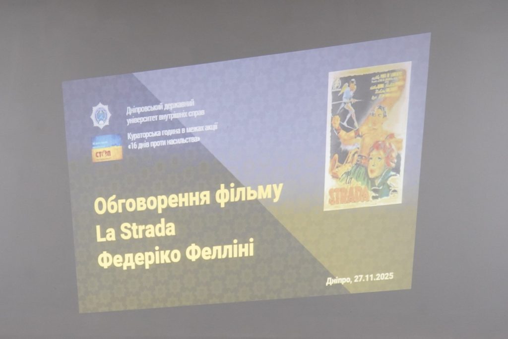 Учасники заходу – курсанти університету – активно обговорювали художні засоби фільму, співвідносили побачене з реаліями сьогодення та аналізували можливі дії правоохоронців у ситуаціях реагування на різні форми насильства. Особливу увагу приділено символічному зв’язку назви стрічки з діяльністю міжнародної організації La Strada, яка займається протидією торгівлі людьми та захистом прав жінок і дітей.
