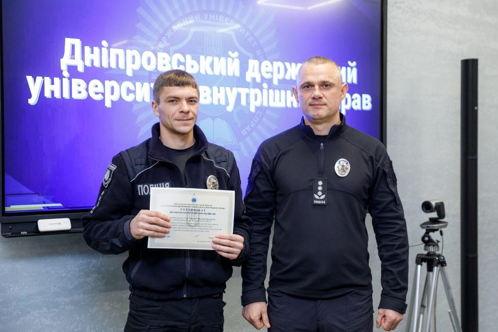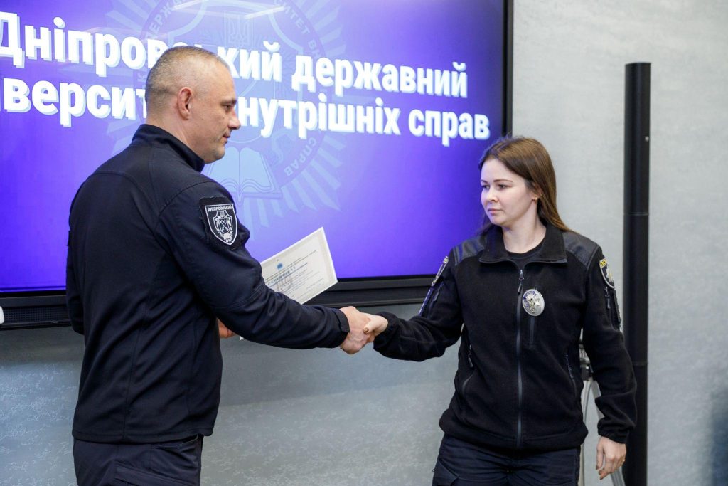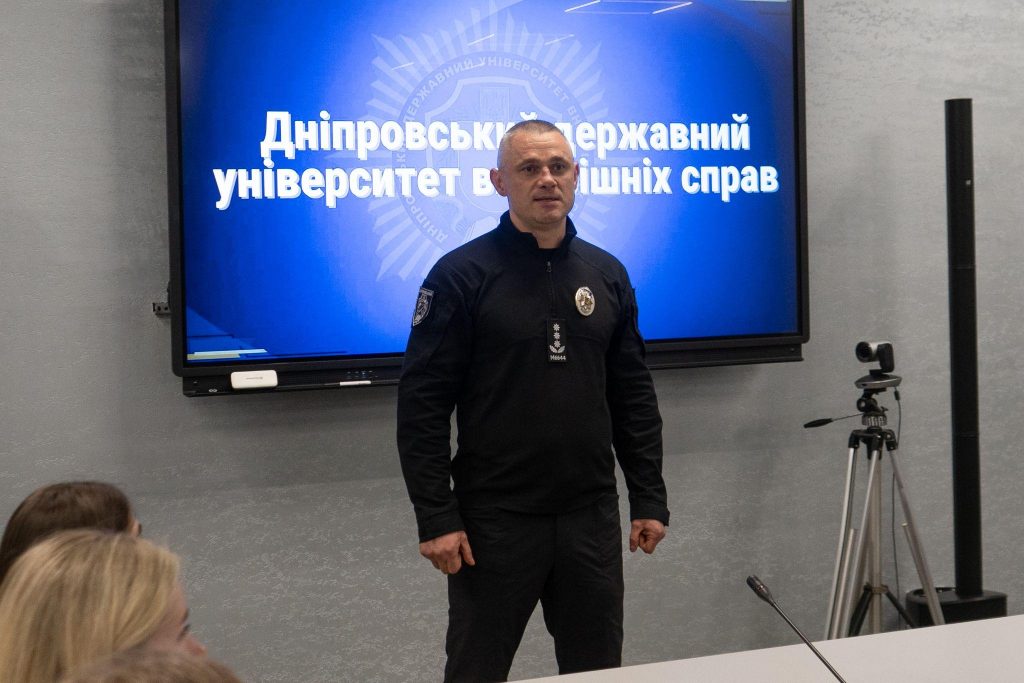 З випускниками зустрівся проректор ДДУВС, полковник поліції Ігор Ковальов. Він подякував присутнім за сумлінне навчання та акцентував увагу на необхідності постійного самовдосконалення поліцейських.