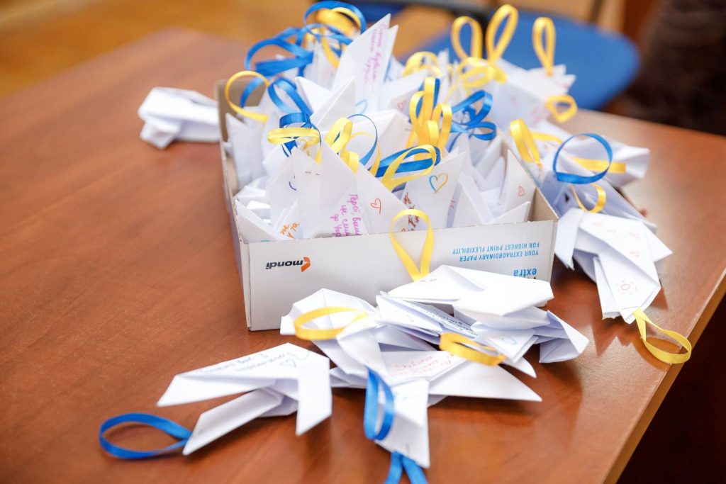 Вихованці ліцею подарували створених власноруч паперових білих голубів із побажаннями та словами подяки нашим захисникам, що символізують мир. Учасники заходу створили спільну історію мрій та зачитали її.
