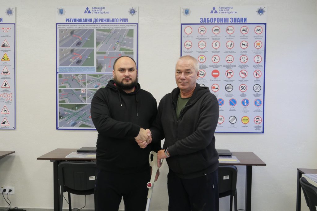 Ветерани Андрій Петренко та Анатолій Зластін успішно завершили навчання на базі Безбар’єрної автошколи Дніпровського державного університету внутрішніх справ. Водійські посвідчення категорії «В» випускникам вручив завідувач відділення автомобільної підготовки Євгеній Хохлов.