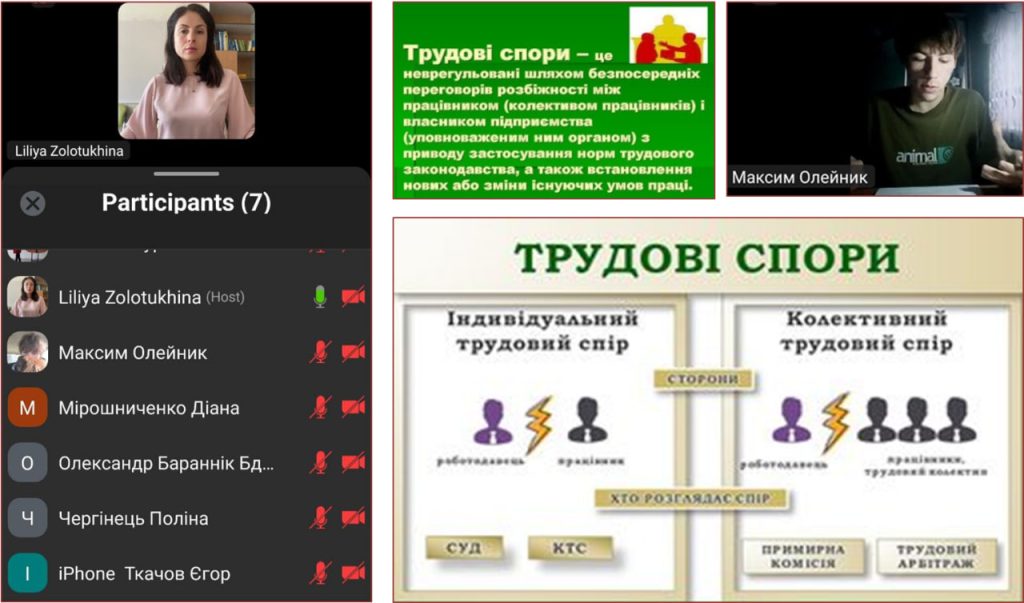 16 грудня кафедра цивільно-правових дисциплін Навчально-наукового інституту права та інноваційної освіти провела онлайн-засідання наукового гуртка «Цивіліст», де розглядалися альтернативні шляхи вирішення трудових спорів (конфліктів) та їх правове регулювання.