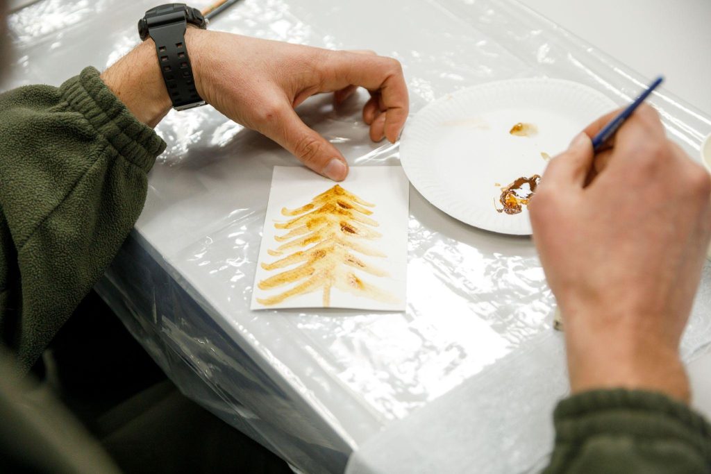 Представники відділу соціально-гуманітарної роботи ДДУВС для військових ветеранів організували заняття з малювання кавою.