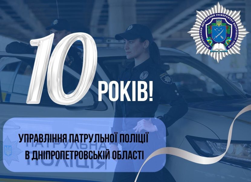 Колектив Дніпровського державного університету внутрішніх справ щиро вітає Управління патрульної поліції в Дніпропетровській області з 10-ю річницею створення!