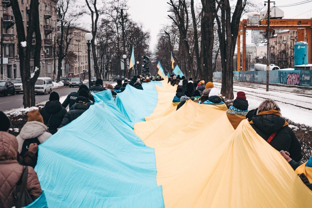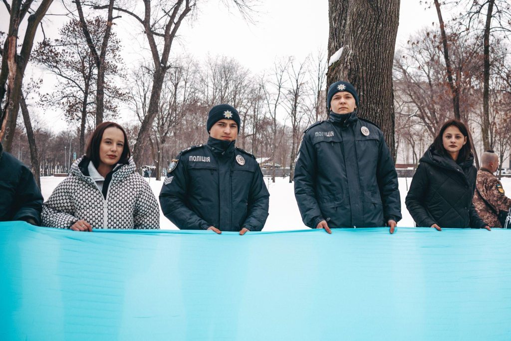 У межах заходу учасники розгорнули Державний Прапор України та пронесли його крізь серце міста, символічно об’єднавшись в один ланцюг пліч-о-пліч.