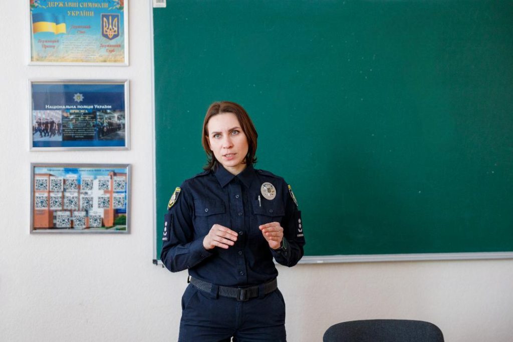 Зі слухачами зустрілася начальниця сектора освітньої безпеки Головного управління Національної поліції у Дніпропетровській області, підполковниця поліції Олена Ткачова.