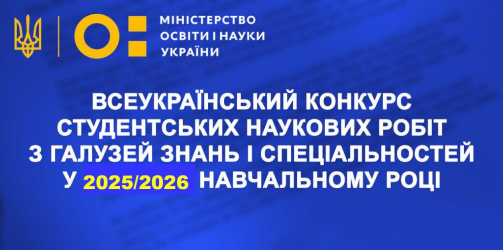 У 2025/2026 навчальному році І тур Всеукраїнського конкурсу студентських наукових робіт з галузей знань і спеціальностей у Дніпровському державному університеті внутрішніх справ проходитиме з 26 січня до 23 березня 2026 року.