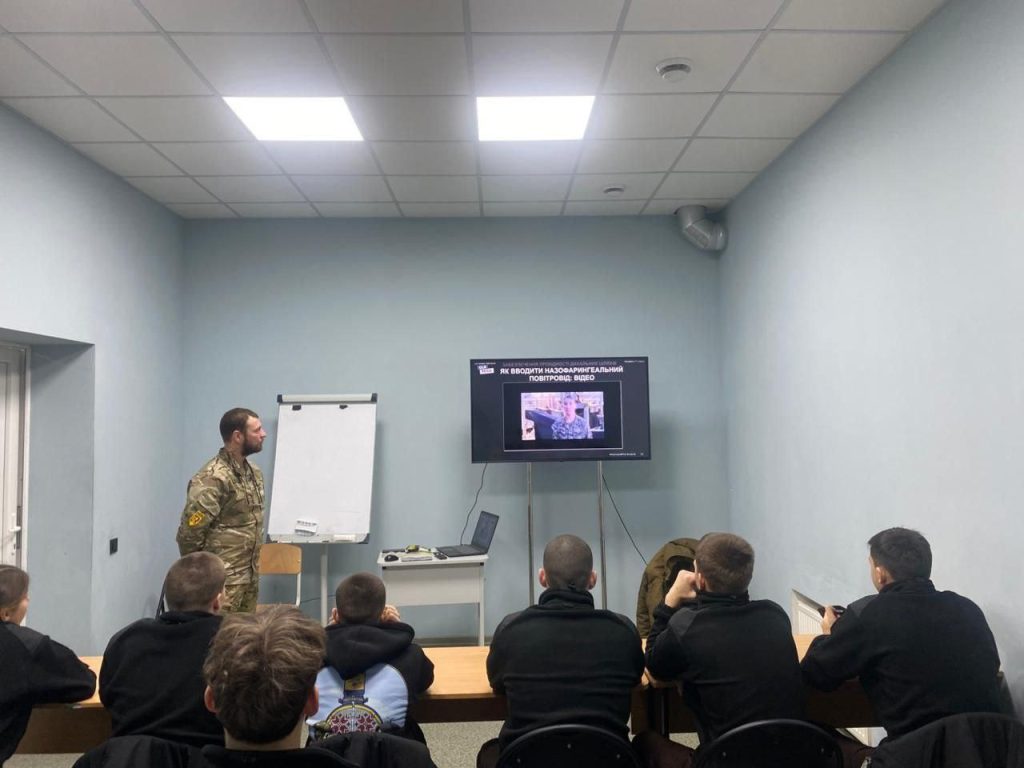Заняття для ліцеїстів проводять представники Рекрутингового центру 12-ї бригади спеціального призначення «Азов» 1 корпусу Національної гвардії України.