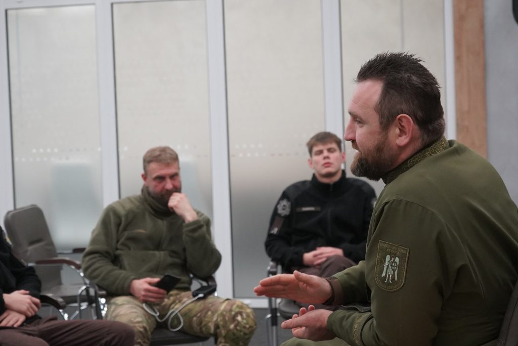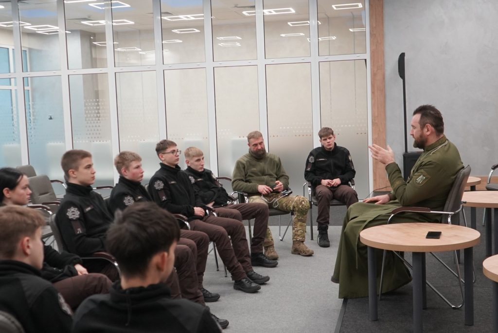 Вихованці Дніпровського ліцею безпекового спрямування та національно-патріотичного виховання ім. О. Гостіщева МВС поспілкувалися з начальником служби військового капеланства Центрального територіального управління Національної гвардії України, підполковником капеланської служби, ієреєм Православної церкви України, Андрієм Карпенком.