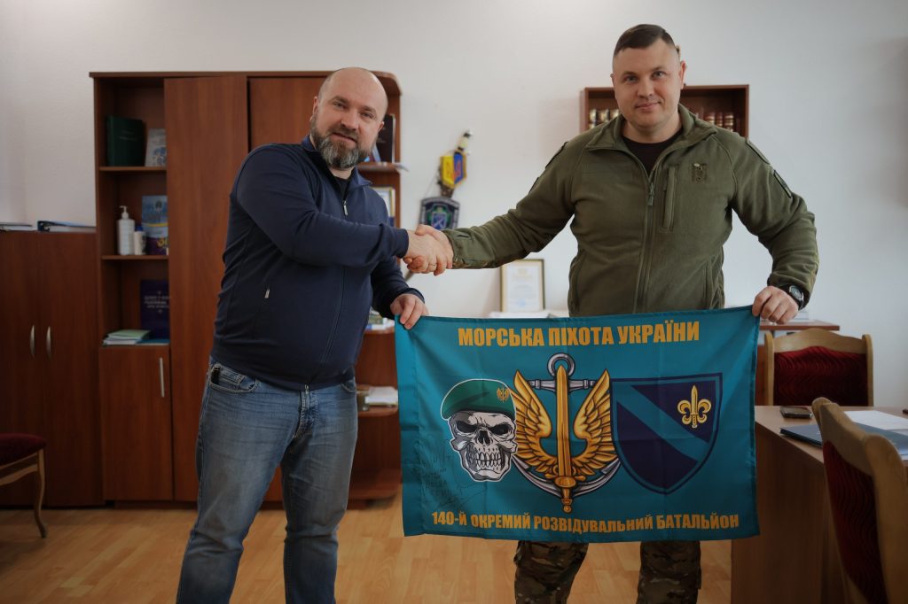 Сергій Басінов також зустрівся із директором Інституту Володимиром Шаблистим і презентував бойовий прапор як символ мужності, побратимства та вдячності за підтримку.