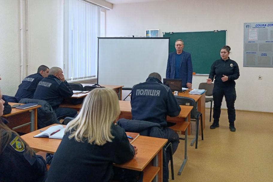 Участь у занятті взяли слухачі відділення організації підвищення кваліфікації та спеціалізації Інституту післядипломної освіти та заочного навчання ДДУВС, вперше прийняті на службу в Національну поліцію України.
