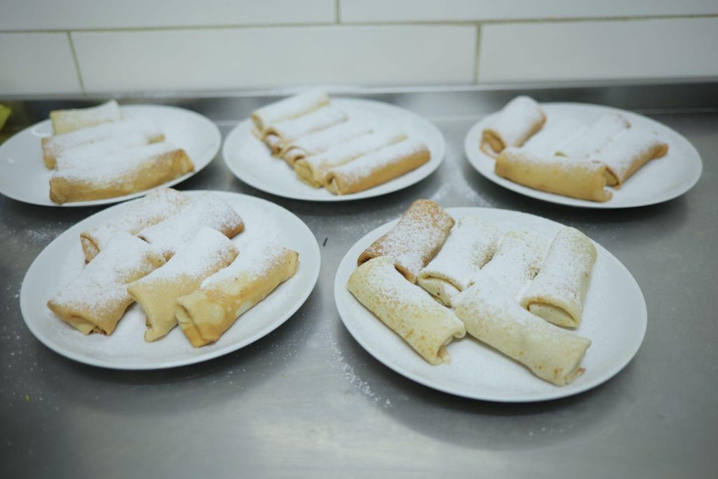Під час заходу Масниці учасники та члени їхніх родин готували млинці, пироги та сирники. Асортимент приготованих страв був широким, використано різні рецепти, аби продемонструвати широту «народного меню» на свято проводів зими.