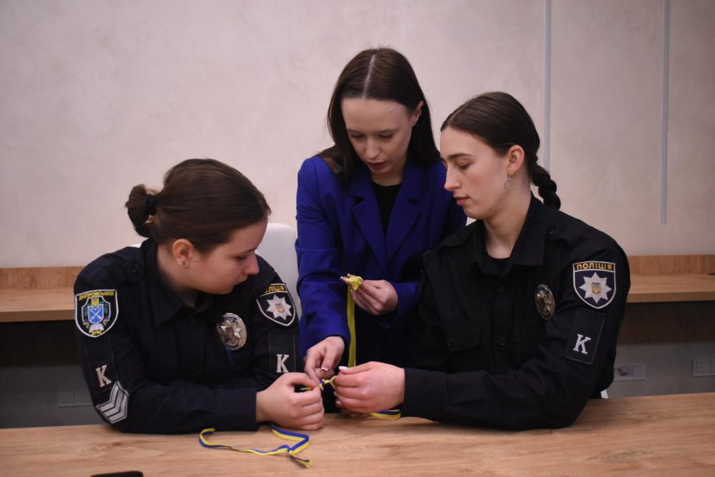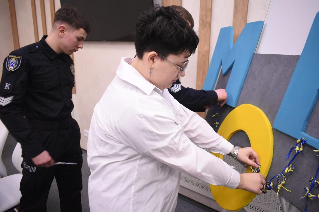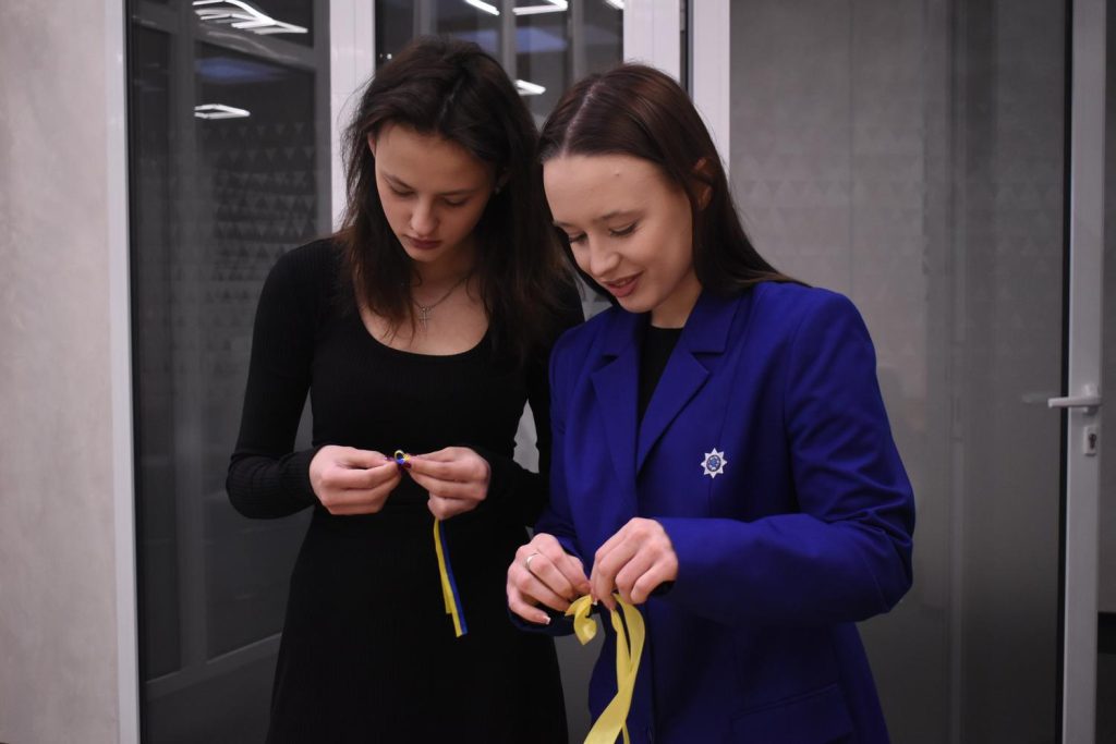 Студенти та курсанти долучилися до символічного майстер-класу. Учасники виготовляли браслети-обереги, використовуючи сині та жовті стрічки. Потім зʼєднували букви між собою, втілюючи ідею нерозривного зв’язку та єдності.