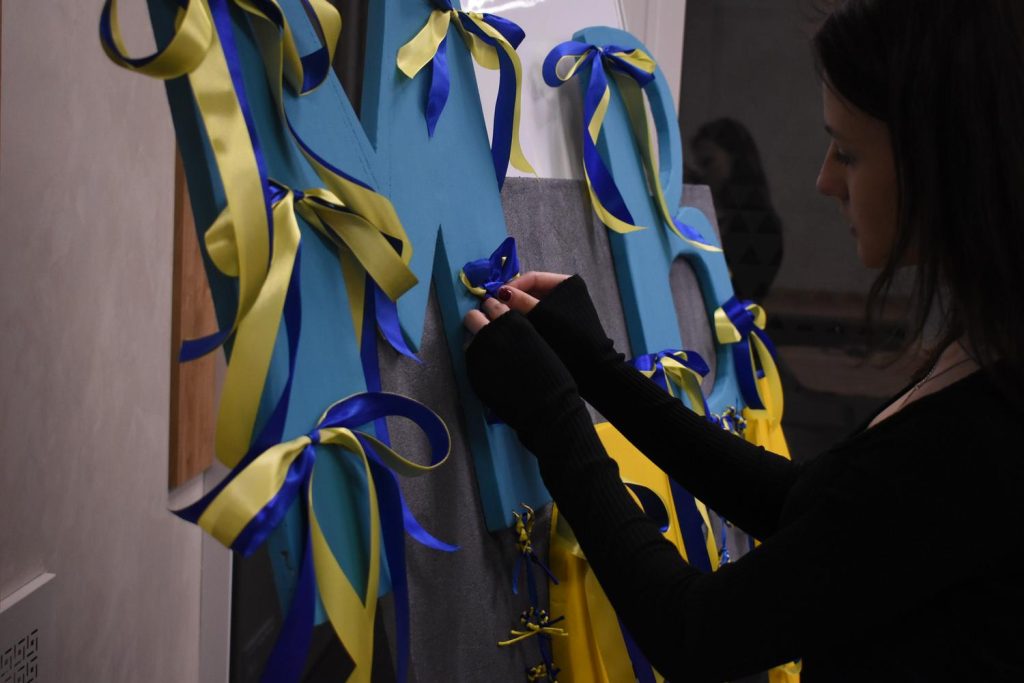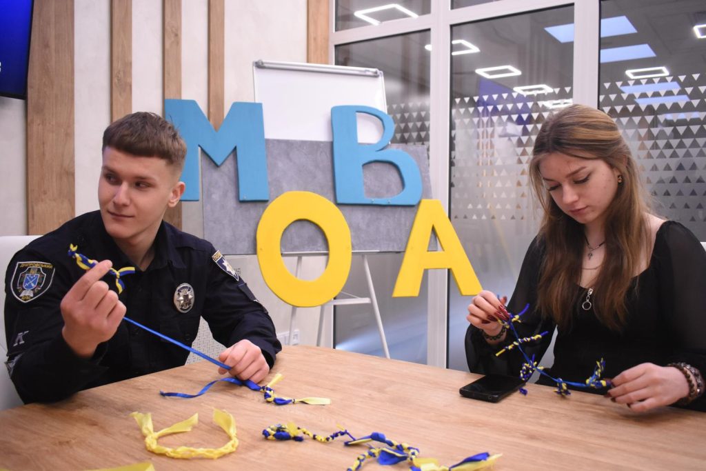 Студенти та курсанти долучилися до символічного майстер-класу. Учасники виготовляли браслети-обереги, використовуючи сині та жовті стрічки. Потім зʼєднували букви між собою, втілюючи ідею нерозривного зв’язку та єдності.