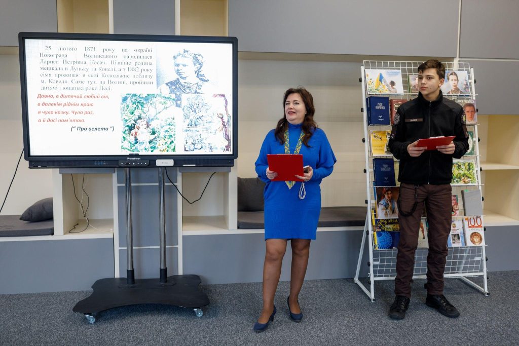 Вихованці Дніпровського ліцею безпекового спрямування та національно-патріотичного виховання ім. О. Гостіщева МВС побачили виставку книг, присвячену 155-річчю від дня народження видатної української поетеси Лесі Українки, а також переглянули презентацію з фотографіями літераторки та місць, де проходило її життя.