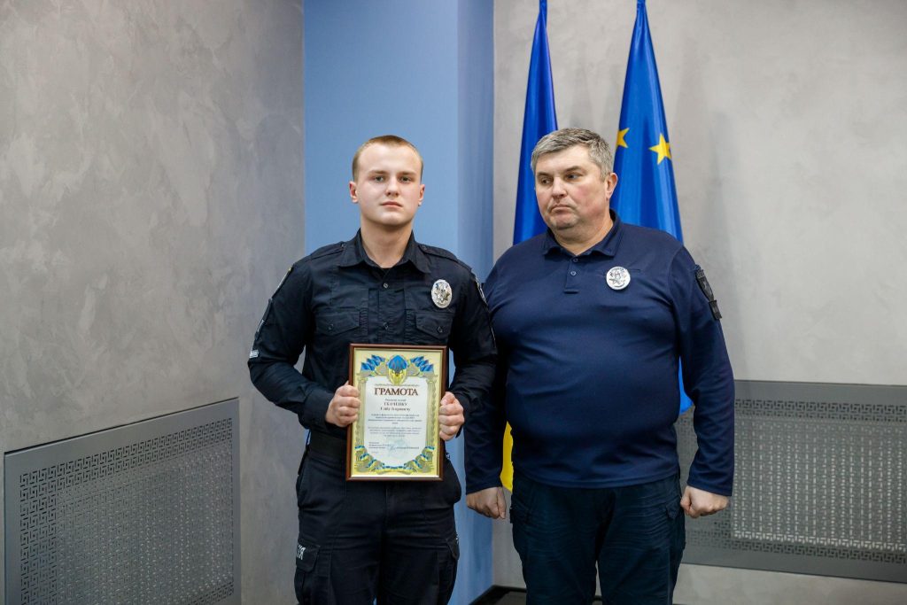 За сумлінне виконання службових обов’язків, проявлену кмітливість, ініціативність, професійну майстерність та рішучі дії під час проведення пошукових заходів на території міста Дніпра грамотами нагороджено заступника начальника курсу факультету підготовки фахівців для підрозділів кримінальної поліції НПУ, капітана поліції Дмитра Циганкова, а також курсантів факультету Артема Геращенка, Гліба Ткаченка та Артема Корнійчука. Грамоти вручив заступник начальника Дніпровського районного управління поліції № 1, полковник поліції Богдан Лісоіван.