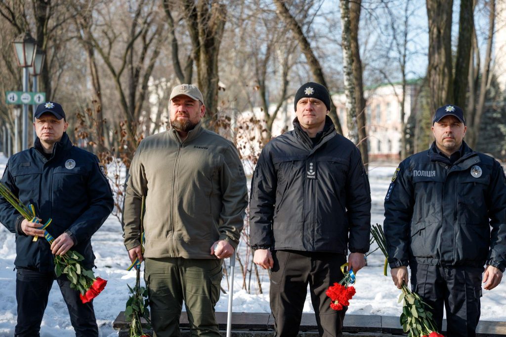 Урочисте покладання квітів та хвилину мовчання проведено біля Монумента загиблим захисникам правопорядку у Дніпрі.
