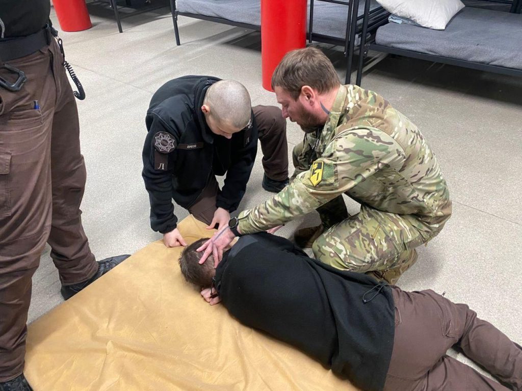 На одному з вихованців інструктор показав алгоритм встановлення повітроводу з детальним поясненням послідовності дій, на іншому – техніку правильного висування щелепи та загальний алгоритм надання домедичної допомоги.