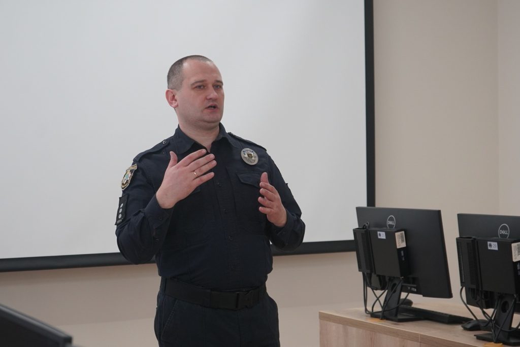 Запрошеним спікером став інспектор сектору ювенальної превенції відділу превенції Дніпровського районного управління поліції № 1 ГУНП у Дніпропетровській області старший лейтенант поліції Максим Дубовик.