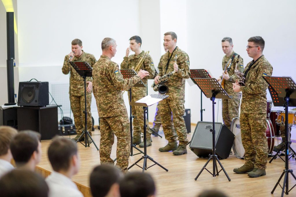 У гості до ліцеїстів завітав оркестр Центрального територіального управління Національної гвардії України під керівництвом майора Олексія КНИШЕНКА. Музиканти підготували насичену концертну програму, виконавши патріотичні пісні, які звучать на передовій та в тилу.