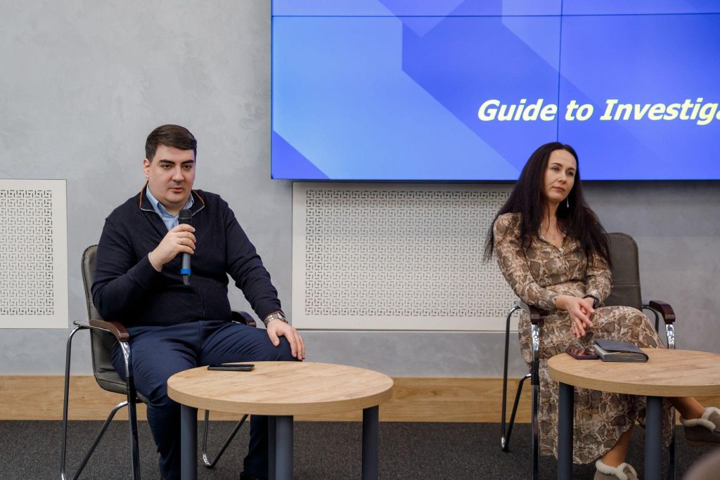 Спікерами виступили професорка кафедри кримінального процесу, майорка поліції Вікторія Рогальська, радник із питань кримінальних розслідувань організованої злочинності КМЕС Кріс Елліотт та спеціалістка КМЄС із питань реформи прокуратури Наталія Монич.