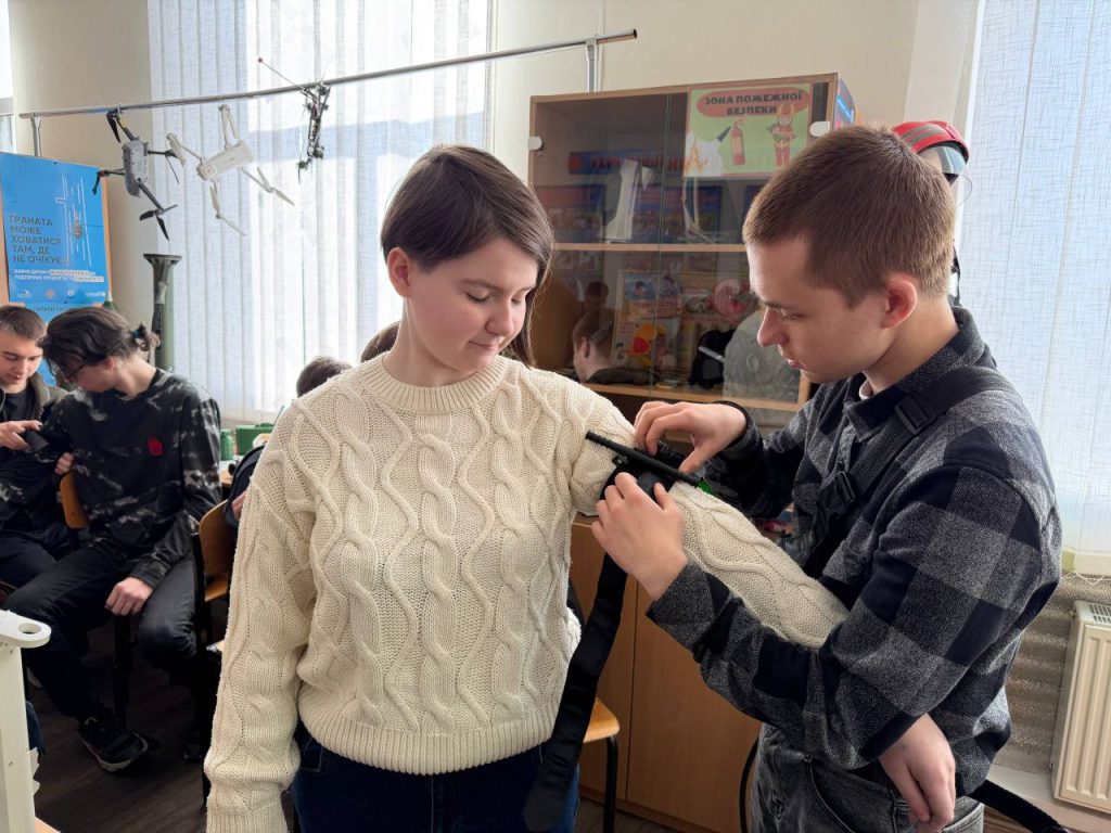 Друга частина зустрічі торкнулася основ домедичної допомоги, де вихованців ознайомили із базовим алгоритмом дій у разі травм та кровотеч. Після теоретичного блоку школярі разом із курсантами відпрацювали практичні навички накладання турнікета для зупинки кровотечі та дізналися про основні правила його використання.