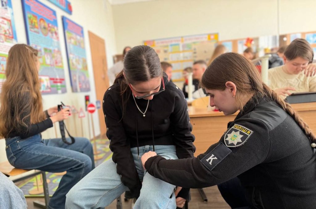 Друга частина зустрічі торкнулася основ домедичної допомоги, де вихованців ознайомили із базовим алгоритмом дій у разі травм та кровотеч. Після теоретичного блоку школярі разом із курсантами відпрацювали практичні навички накладання турнікета для зупинки кровотечі та дізналися про основні правила його використання.