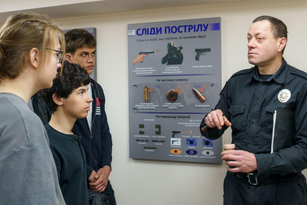 Крім того, ліцеїсти ознайомилися зі слідчо-криміналістичним полігоном, «Кризовою кімнатою, дружньою до дитини», навчальним полігоном «Запобігання та протидія домашньому насильству», мультимедійним тиром, побачили, як проводяться заняття та здобуваються практичні навички курсантами.