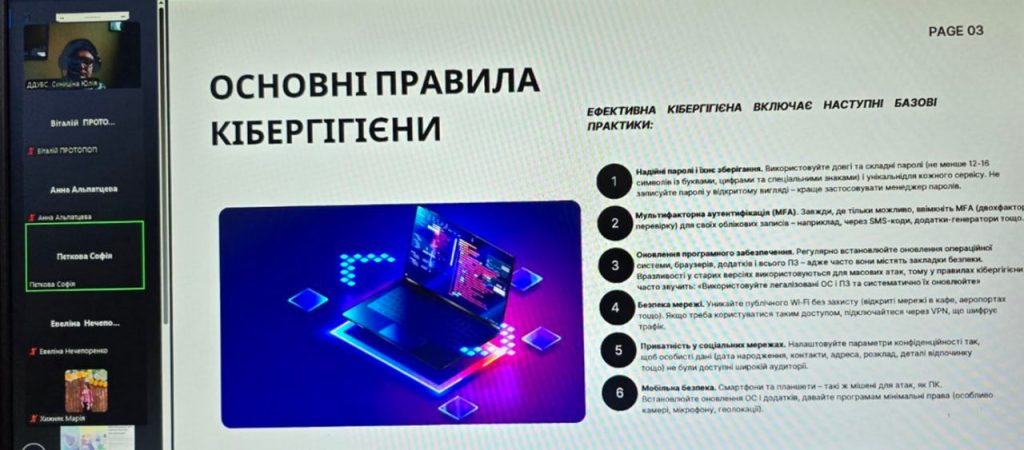 25 березня кафедра інформаційних технологій провела онлайн-засідання наукового гуртка, присвячене проблемам захисту персональних даних у цифрову епоху та кібергігієни як його основи.